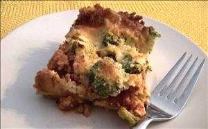 Prepare a 9" x 13" pan with cooking spray; set aside. In a mixing bowl, combine cottage cheese, one cup mozzarella cheese, egg, broccoli, salt, basil, oregano, garlic powder, and black pepper. Mix well. In prepared pan, layer half cup spaghetti sauce, a third of the noodles, and half of the cottage cheese mixture. Repeat layer and top with remaining noodles and remaining sauce. Sprinkle with remaining mozzarella cheese. Refrigerate for several hours. Preheat oven to 350. Cover top with foil and bake for one hour, or until hot and bubbly.
