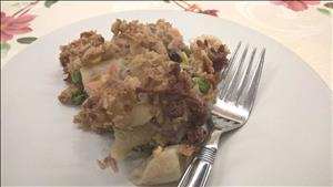 Preheat oven to 400. Prepare a 9" x 13" pan with cooking spray; set aside. In a mixing bowl, combine cooked pasta, mushroom soup, tuna, and mixed vegetables. Mix well. In a liquid measure combine milk, salt, and black pepper. Pour over tuna mixture and mix until combined. Place mixture into prepared pan. Sprinkle top evenly with crushed cereal and cheese. Bake for 25 minutes, or until heated through.